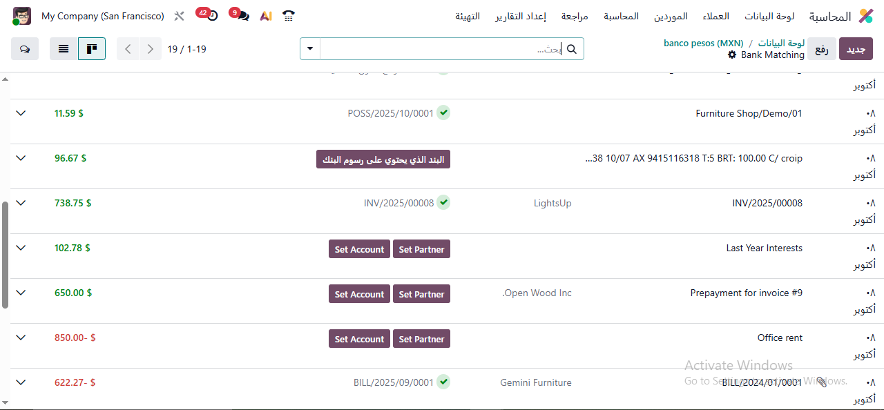 تمت إعادة تصميم عملية تسوية الحسابات البنكية بالكامل في Odoo 19 لتصبح أكثر سهولة وسرعة.